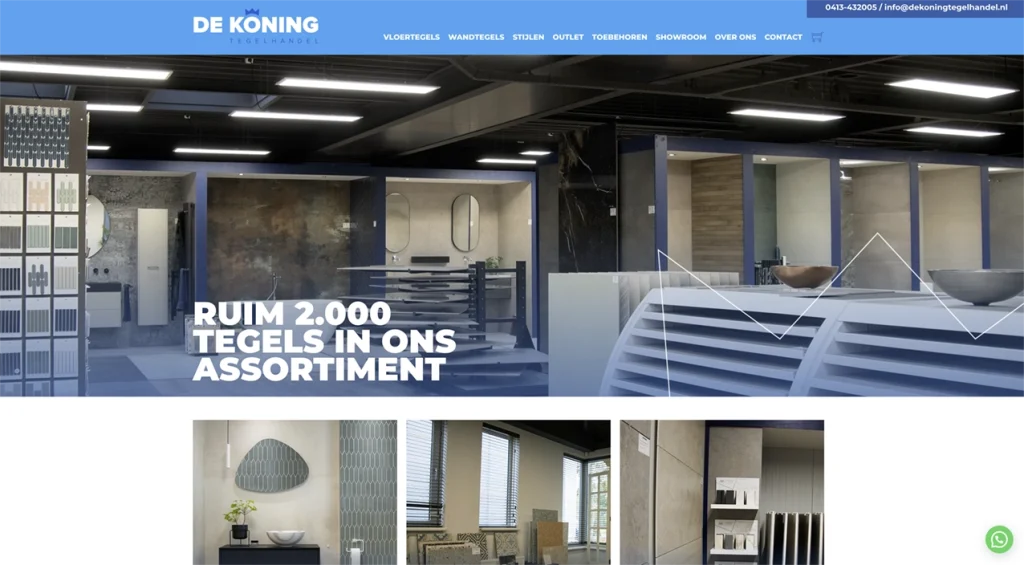 Wij hebben de website van De Koning Tegelhandel een moderne make-over gegeven door deze om te vormen tot een uitgebreide webshop. Met een enorm assortiment is de website nu future-proof en biedt het klanten een gebruiksvriendelijke online winkelervaring. Deze digitale transformatie heeft geleid tot een toename van nieuwe aanvragen en bestellingen vanuit het hele land, wat het succes van de nieuwe website onderstreept.